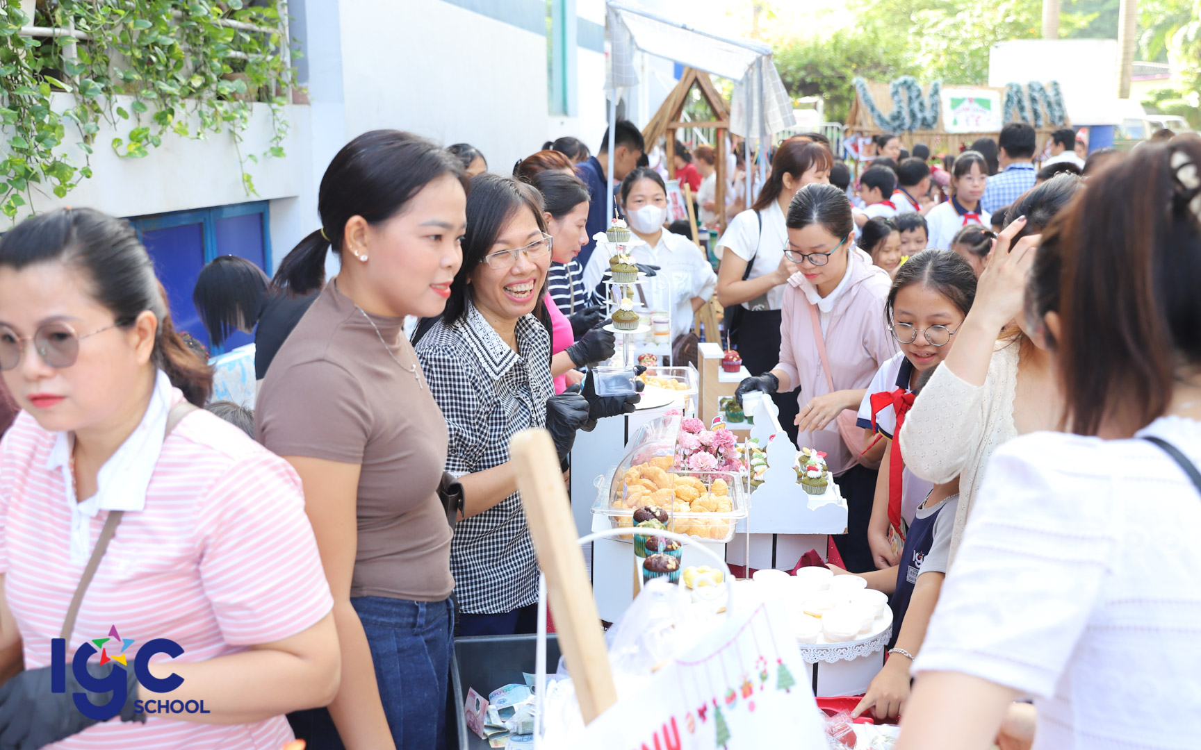 Phụ huynh và học sinh cùng tham gia không gian trải nghiệm Ẩm thực – Nghệ thuật, với các gian hàng đa dạng mang đậm bản sắc vùng miền, được chính phụ huynh các lớp trực tiếp tổ chức và thực hiện.