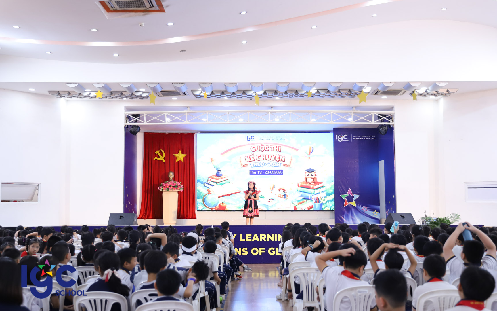 Hội thi Kể chuyện theo sách đã diễn ra trong không khí sôi nổi với sự tham gia hào hứng của đông đảo học sinh trong toàn trường. Đây không chỉ là sân chơi bổ ích mà còn là cơ hội để các em thể hiện niềm yêu thích đọc sách, rèn luyện kỹ năng kể chuyện và sự tự tin khi đứng trước đám đông, đồng thời lan tỏa những thông điệp ý nghĩa từ các trang sách đến mọi người.